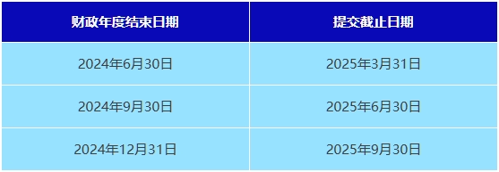 年度申报表 - 财政年度结束后9个月